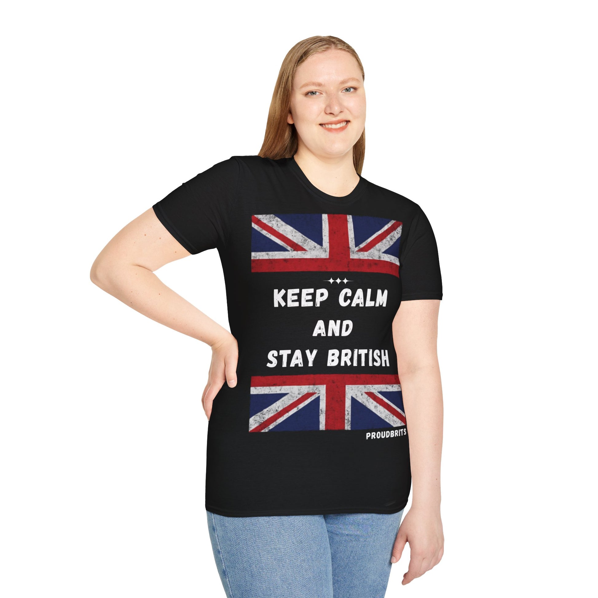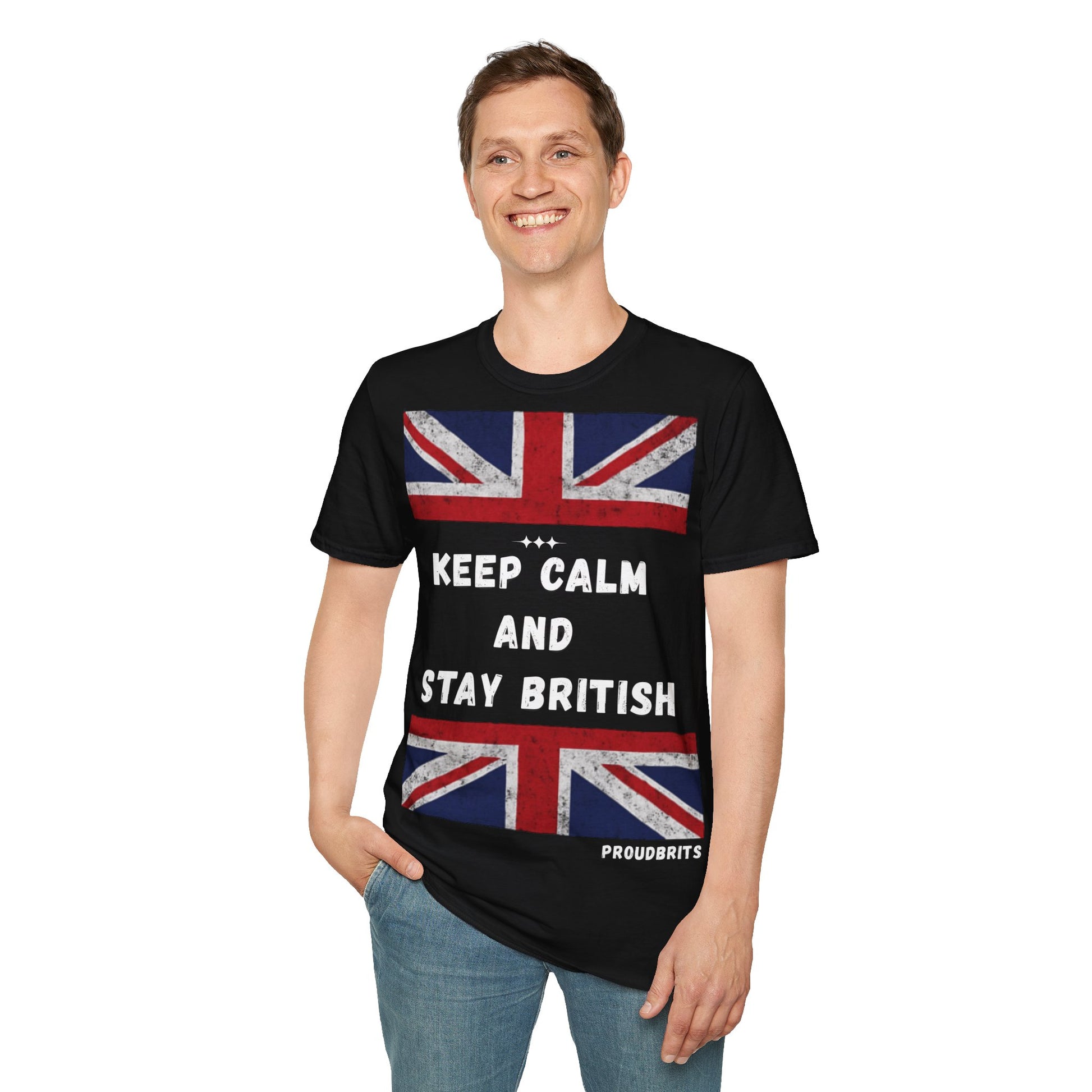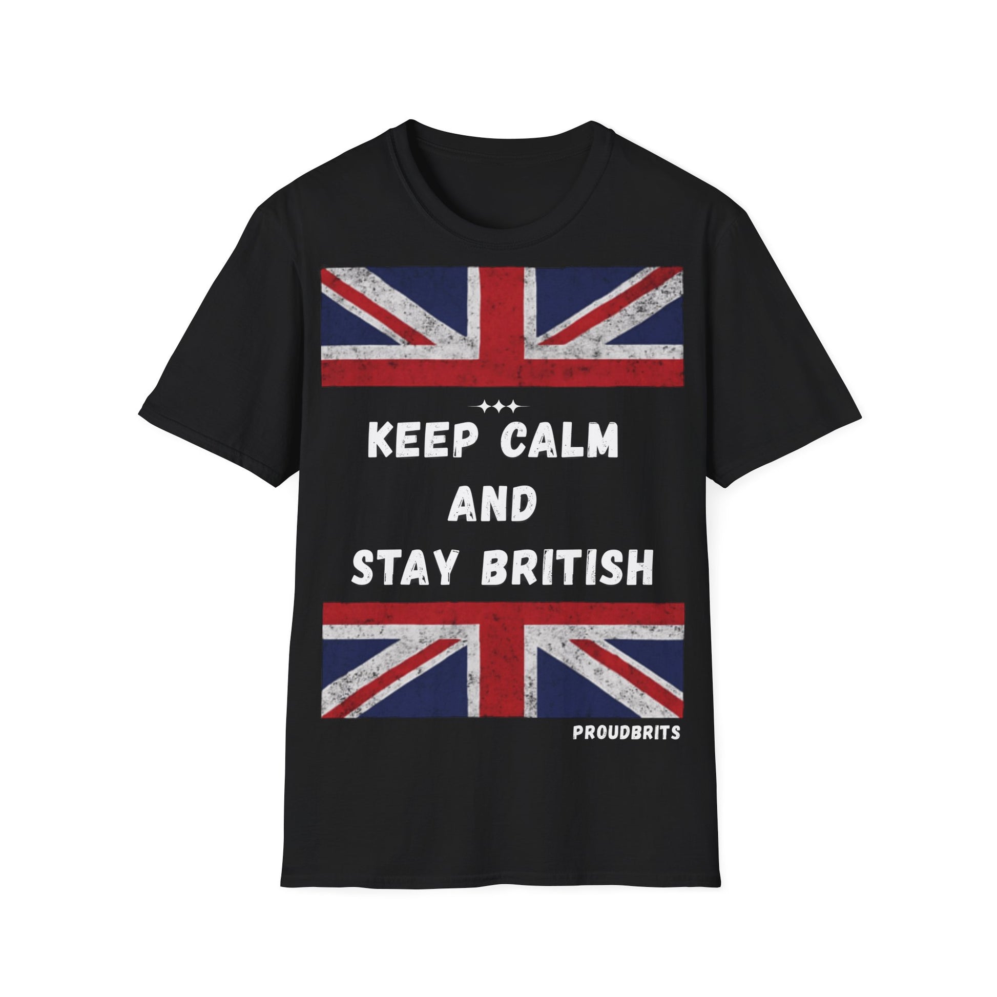 Show your pride with the ProudBrits “Keep Calm and Stay British” Tee. Featuring a distressed Union Jack print and bold slogan, this shirt blends iconic heritage with modern streetwear style.